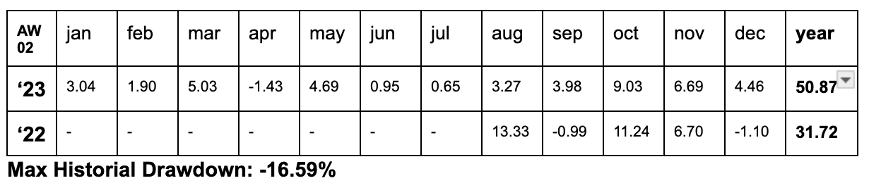 Building on the success of our AW01 system, we are introducing AW0.1. This new development demonstrates our commitment to offering a diversified and advanced portfolio of quantitative trading strategies.